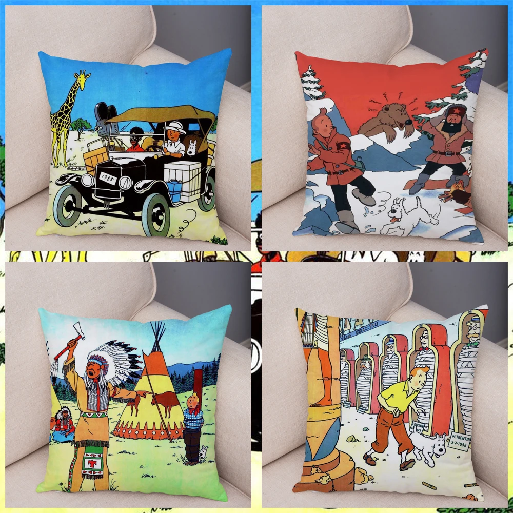 Hot Sale The Adventures of Tintin Print Throw Pillow Cover 45*45cm Textile Cushion Cover Plush Pillow Case S