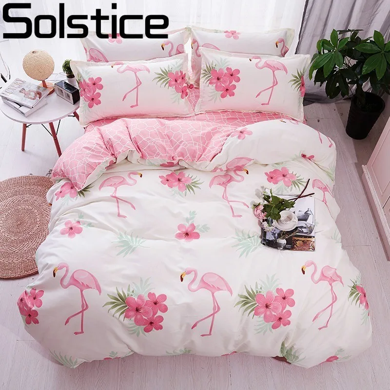 Solstice Home Textile Flamingo Cartoon Lovely Bedding Sets Duvet Cover Pillowcase Sheet Linen Twin